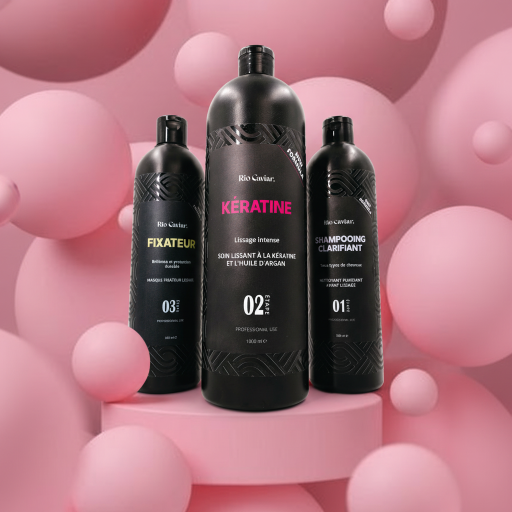 Pack Lissage Protéine (100 ml, 500 ml ou 1 L) : idéal pour cheveux colorés, fins ou fragiles, il nourrit et restructure la fibre sans l’alourdir.