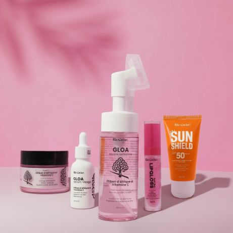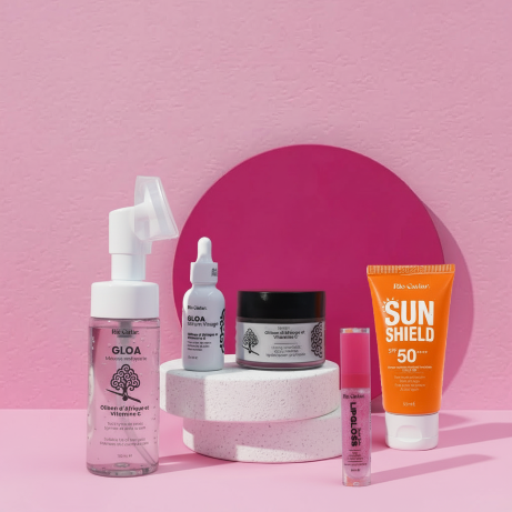 Le Pack Rio Caviar GLOA est une routine visage complète de 6 produits essentiels (écran solaire SPF 50+, crème de jour, mousse nettoyante, sérum, lip gloss), enrichis en vitamine C, acide hyaluronique et actifs protecteurs, spécialement conçus pour nettoyer, hydrater, protéger et sublimer la peau avec éclat.